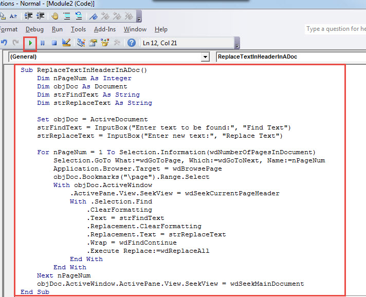 Even so, there still can be some text which stays the same in all headers. To replace them under such circumstances, you will have to use following macro to do the job.