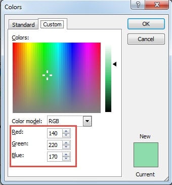 - Then in the “Colors” dialog box, you can get the RGB values of the color. And to apply other texts with this color, you just follow the above steps to get to the “Color” dialog box and enter the RGB values.