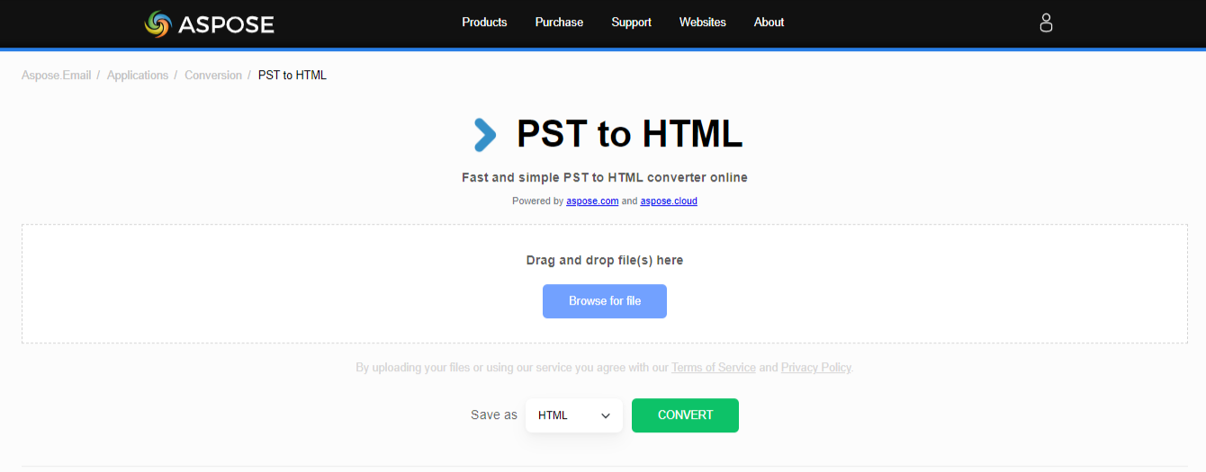 | ASPOSE PST to HTML Online Converter | No Installation Needed, Free of Cost | Medium | Free | Medium |