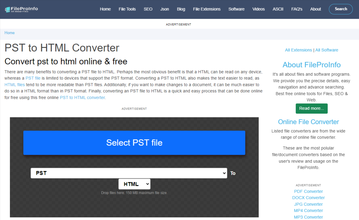 | FileProInfo PST to HTML Converter | Conversion of PST to HTML | Web-based Tool | Completely Free | Available |