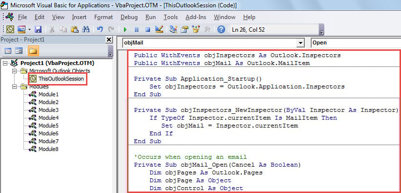 - Finally, you can restart your Outlook application, which will activate the new VBA project.