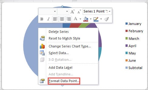 - Now click the area of the “Subtotal”. When you click, you will see that the whole pie is selected.