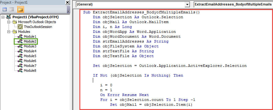 When someone send you an email whose body contains a list of email addresses, if you want to make use of these email addresses for some reasons, like adding to your Contacts folder or others, you have to firstly extract all the email addresses in the body. Therefore, in the followings, we will show you how to achieve it with VBA.
