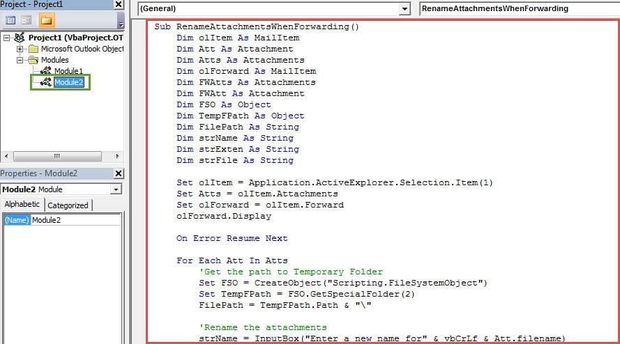 By default, Outlook doesn’t permit user to rename attachments when forwarding. Therefore, if you would like to rename them, the unique way is to first save the files to a local folder on your computer, then rename them and next re-attach them to the forwarding email. Obviously this method is considerably troublesome. Moreover, sometimes, these files may be inessential for you, so you really don’t want to save them to your computer. In this situation, you must long for a quicker method to let you rename the attached files directly in the forwarding emails. The following is an approach to realize it through Outlook VBA.