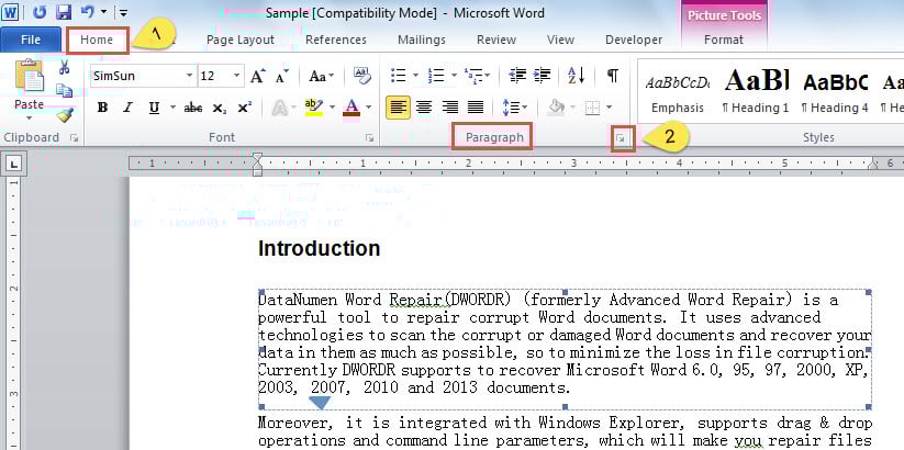 - Then go to “Paragraph” group and click “Paragraph” to open the dialog box.